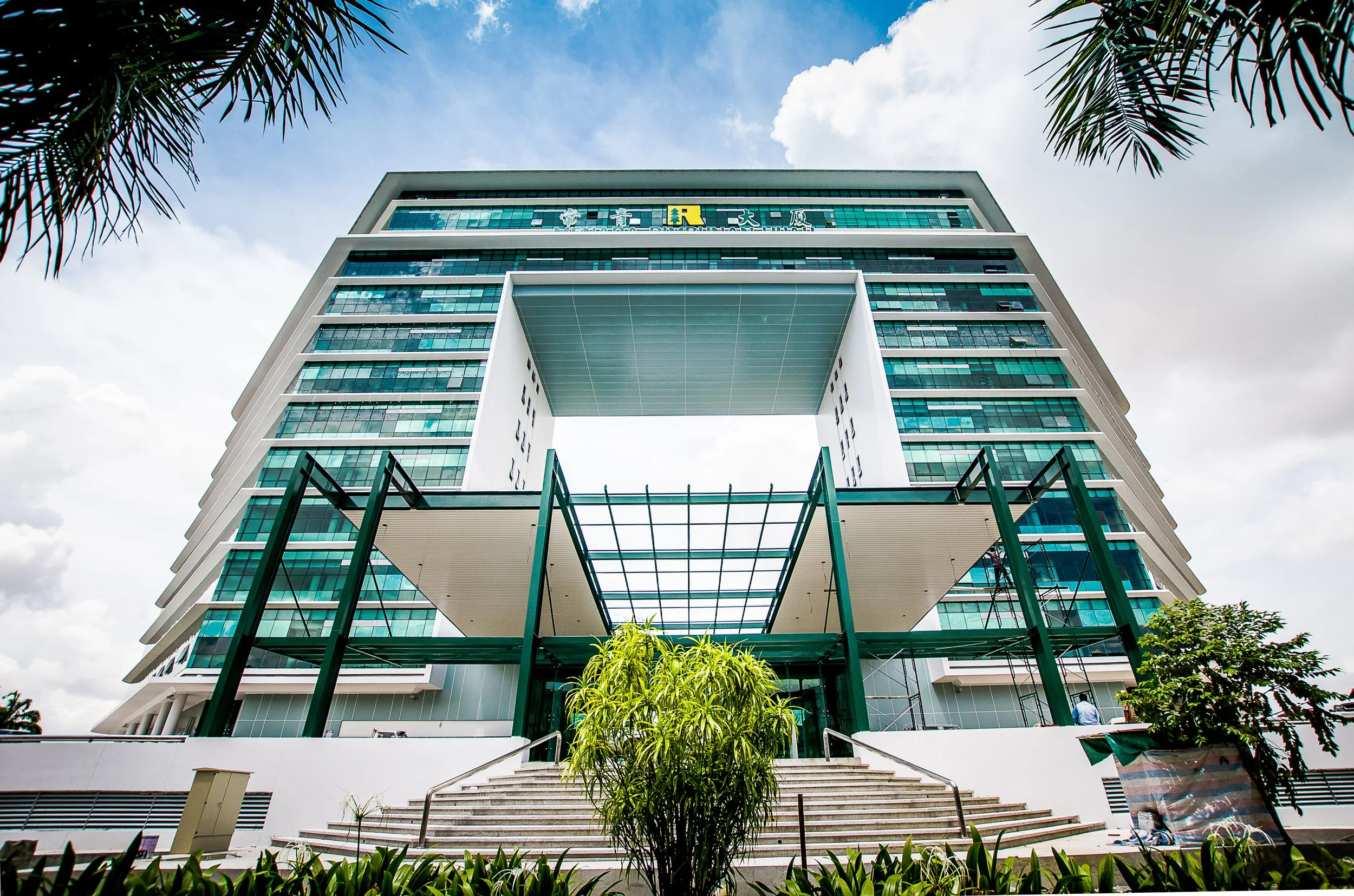 Rimbunan Hijau Headquarters in Sibu, Sarawak, serves as the corporate headquarters for the Rimbunan Hijau (RH) Group of Companies, founded in 1975. The group started along the Rajang River, the longest river in Malaysia, and has since expanded globally to countries including Australia, British Guyana, Cambodia, China, Hong Kong, Indonesia, Korea, Papua New Guinea, Congo, Solomon Islands, Russia, and the USA. The site along the majestic Rajang River was chosen to honor the birthplace of the company.