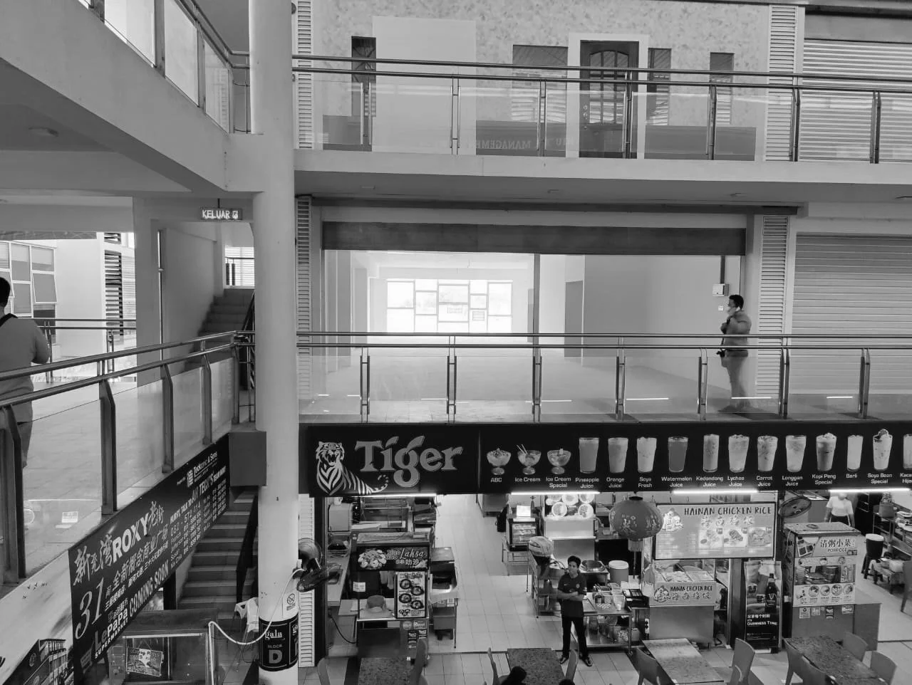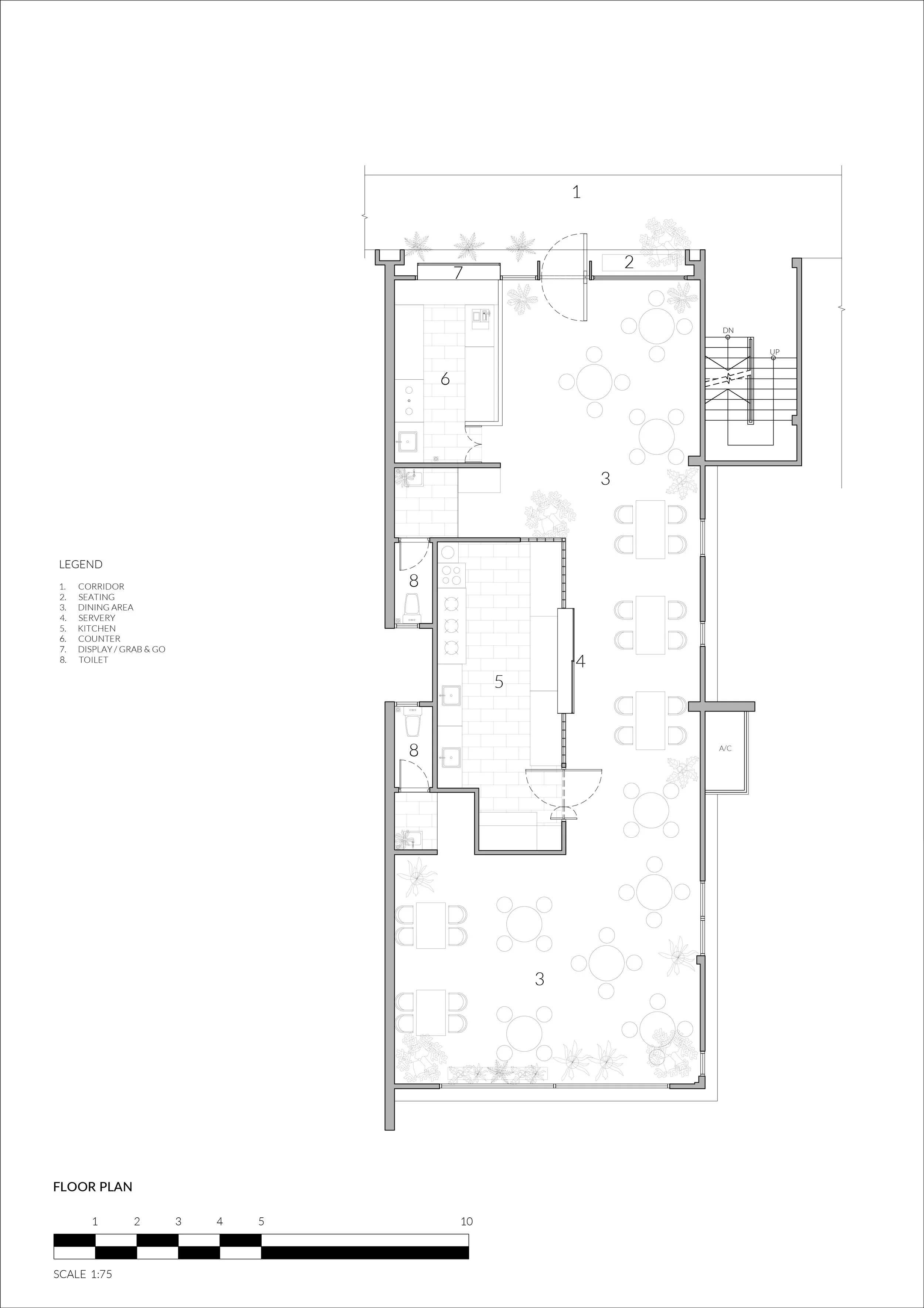 The cafe is located within an existing commercial street mall development in Kuching. The building contains busy coffee shops, eateries and offices on various levels. At its conception, the cafe was intended to be the first eatery within the building to be located on the upper floor. An internal common space links all shop lots in place of a typical back-lane, essentially acting as a ‘street mall’. This meant that like a mall, the back of the lot was to be prioritised as the main frontage for the café.