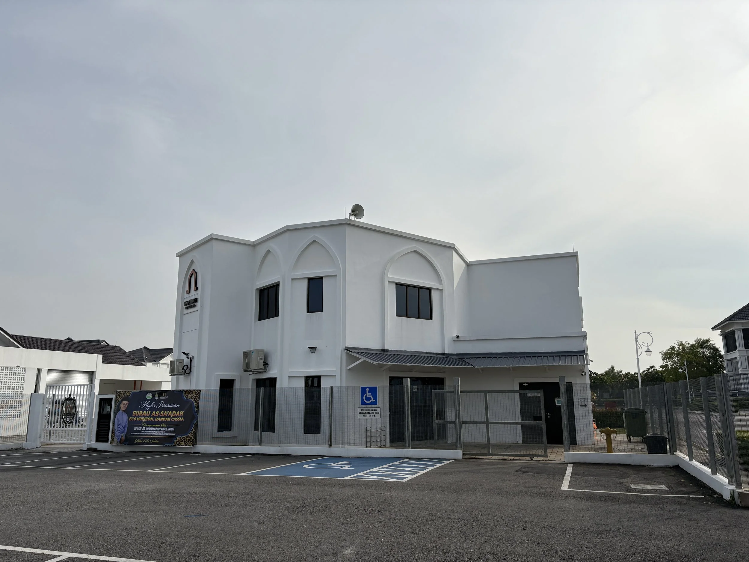 Occupying a compact 0.17-acre site, this modestly scaled surau was built as a centre of unity for the Muslim community in Eco Horizon, promoting cohesion among its members. Its architectural design emphasizes a minimalist facade that is in harmony with the surrounding environment, showcasing the character of Islamic arches and simple forms integrated within a modern Islamic minimalist architectural framework.
