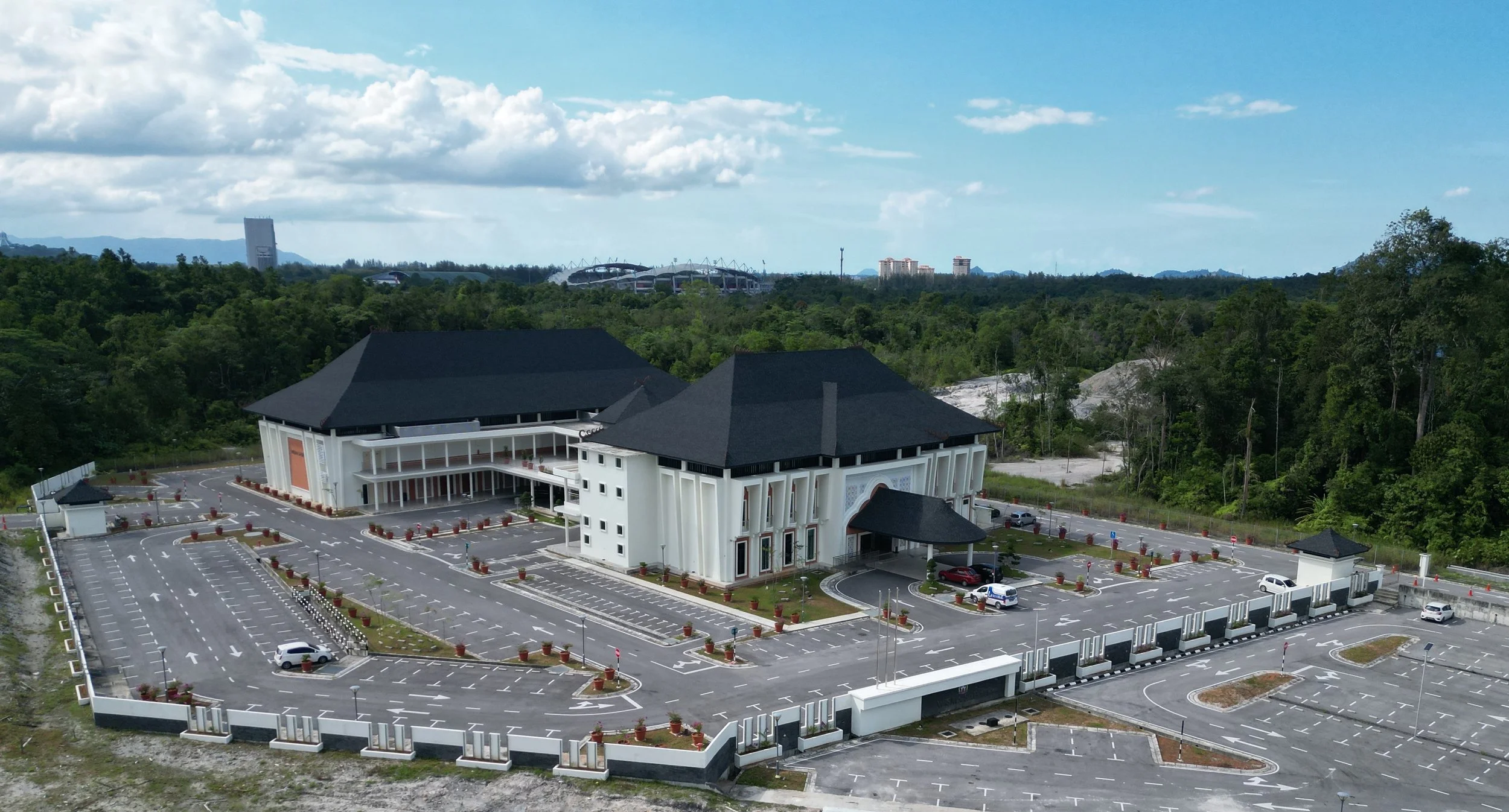 Wisma SABATI is strategically located at a prominent urban junction along Jalan Bako, fronting a major roundabout within a civic and institutional corridor. Set on a 4.00-acre site surrounded by key public amenities, the building establishes a strong civic presence, conceived as both a landmark and a community interface responding to its highly visible urban context. The project responds to its urban context by establishing a strong civic presence, conceived as both a landmark and a community interface. The massing and orientation are calibrated to address the surrounding road network while reinforcing SABATI’s identity as a public-facing, socially driven institution.
